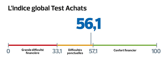 Selon notre baromètre 2020, ils sont 71 % à juger que la crise n’a pas impacté leurs revenus, mais 7 % à dire qu’elle les a rabotés de plus de 25 %. Pour les premiers, l’indice Tests Achats se situe à 59,9; pour les seconds, il n’atteint que 45,8. Mais comme ces ménages plus défavorisés représentent moins d’un quart de la population, la tendance générale est positive.