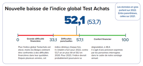 Le baromètre annuel de Testachats analyse la capacité des ménages à faire face à leurs dépenses quotidiennes concernant le logement, la santé, l’alimentation, la mobilité, leur temps libre et leur éducation. Le baromètre pour l’année 2022 confirme la tendance d’une baisse de pouvoir d’achat, tous domaines confondus. C’est la quatrième année consécutive que la proportion des ménages déclarant avoir de grandes difficultés financières grandit, et ce de manière toujours plus conséquente. Des chiffres qui inquiètent, à la veille de la journée mondiale des droits des consommateurs.