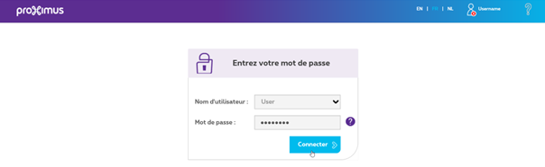 - Saisissez le mot de passe de la carte ID livrée avec le modem ou regardez sur la face arrière de ce dernier (user password)