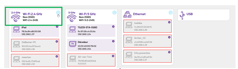 3. Cliquez sur la roue dentée à côté du réseau 2,4 GHz