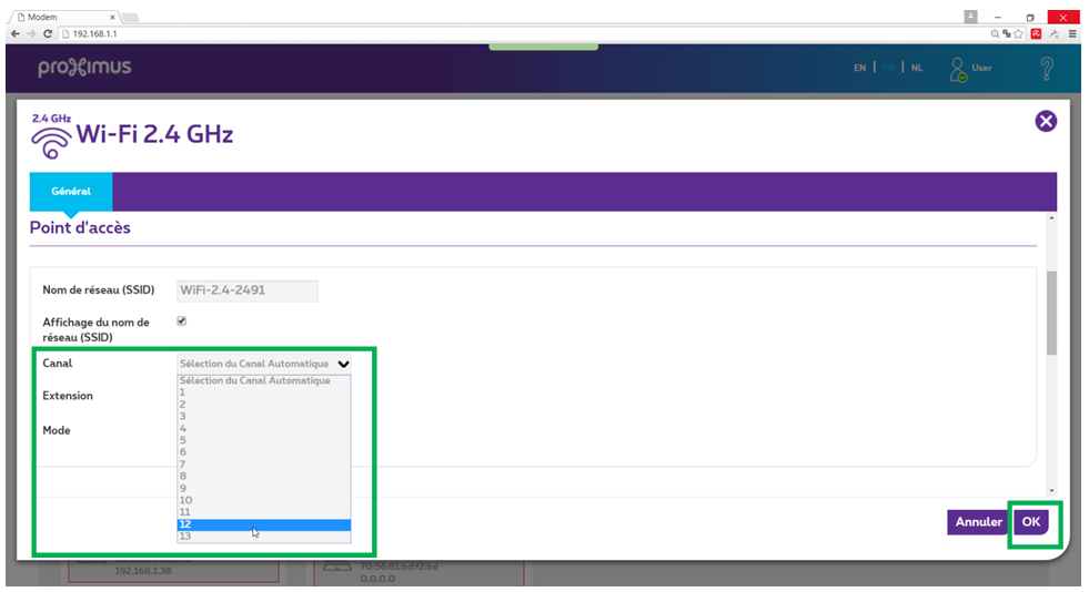 Pour un autre fournisseur d'accès à internet, le principe est le même. En général, il faut aller dans le menu de votre modem-routeur (par exemple sur votre ordinateur) et ensuite dans les paramètres réseau pour changer de canal.