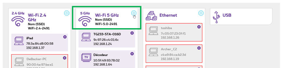 5. Cliquez sur la roue dentée à côté du réseau 5 GHz