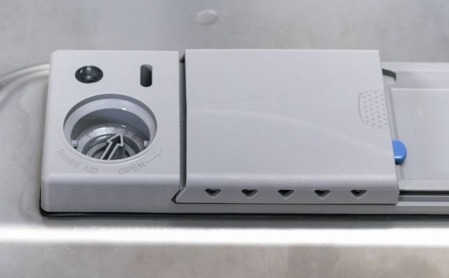3. Vérifiez le compartiment à produit vaisselle et à liquide de rinçage