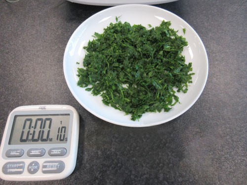 Hacher les herbes et les oignons n’est pas véritablement le point fort du TM6. Le TM5 est particulièrement bien adapté pour hacher les herbes.