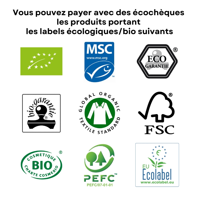 Les travailleurs peuvent par exemple consacrer leurs écochèques à l’achat d’appareils économes en énergie, d’aliments bio, de vêtements durables et de bien d’autres choses encore. Il s’agit d’encourager les consommateurs à faire des achats réfléchis et durables moins nocifs pour l’environnement.