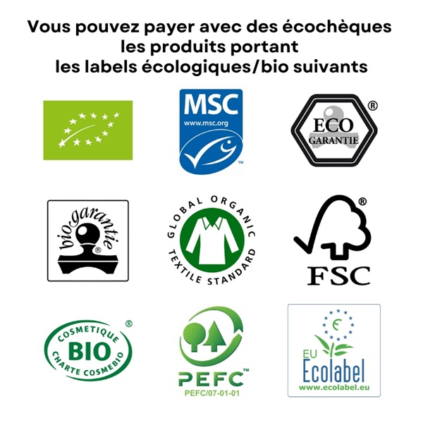 Les écochèques sont des chèques distribués à des travailleurs par leur employeur pour acheter des produits et services écologiquement responsables. Les écochèques viennent s’ajouter au salaire et sont exonérés de taxes et de charges sociales. Ils sont utilisés en Belgique pour stimuler l’achat de produits respectueux de l’environnement.