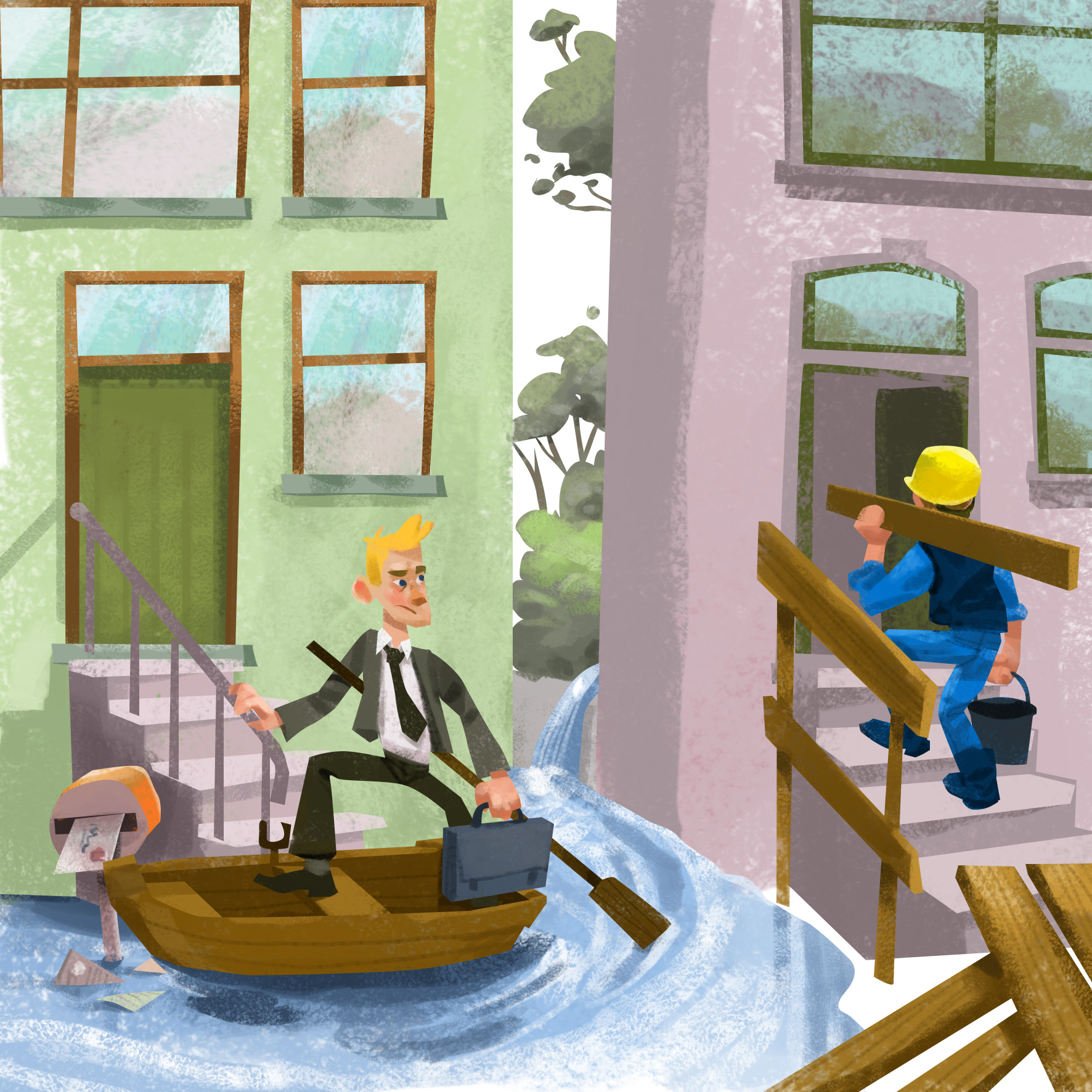 En rentrant du travail, Jean constate que sa pelouse est complètement inondée. Il ne tarde pas à en trouver la cause: les voisins sont en train de rénover et les entrepreneurs ont remplacé une conduite d'eau. Jean aimerait bien sûr être indemnisé, mais il n'est pas facile de prouver que les entrepreneurs ont commis une faute en remplaçant la canalisation.