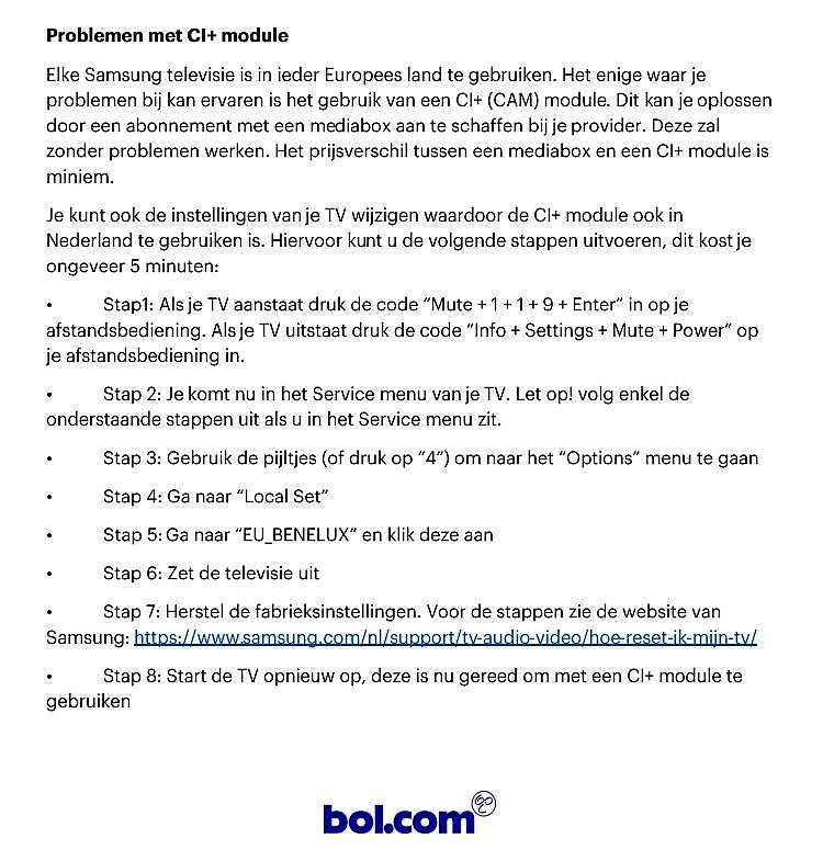 La principale limitation technique dans le cas d’une TV non-Benelux est que le module CI+ (voir avertissement ci-dessous sur le site de Bol.com) peut ne pas fonctionner de manière optimale. Le client peut toutefois régler le problème en achetant un décodeur (ce qui n'est pas si coûteux, au final).
