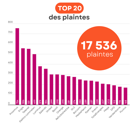 En trois ans, plus de 57.000 plaintes ont été introduites sur la plateforme. Elles concernent principalement les biens de consommation, les services postaux et de télécommunications et le secteur de l’énergie. Lorsque l’entreprise ne se montre pas coopérative, Testachats signale ces pratiques auprès de l’Inspection économique. Sur cette période, l’organisation y a déposé un total de 21 plaintes. Ces chiffres portent uniquement sur les plaintes introduites via la plateforme, et ne reflètent donc pas l'ensemble des plaintes reçues quotidiennement par Testachats via d'autres canaux, tels que son service d’aide.