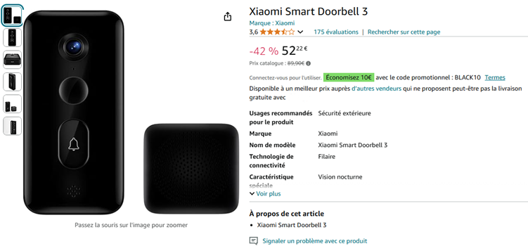 Exemple 2 : Le prix de cette sonnette intelligente a augmenté, mais elle est toujours annoncée avec une réduction.
