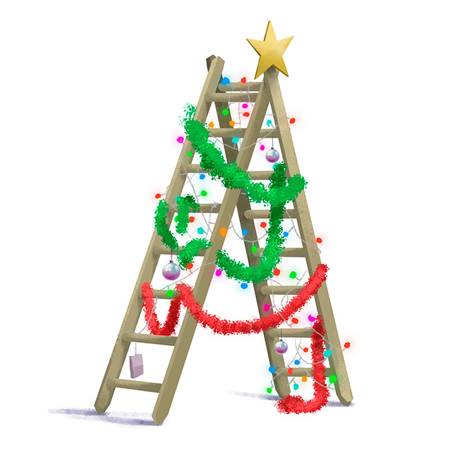Dépliez l’échelle et décorez-la comme un sapin de Noël. Super pour les grands espaces. |