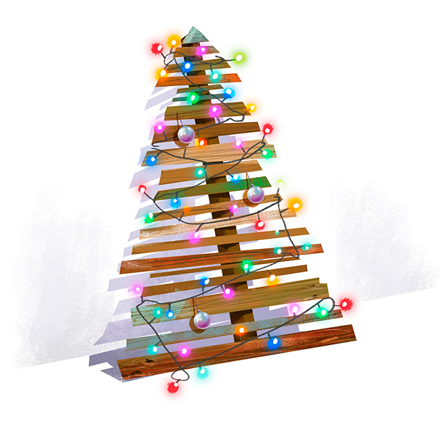 Dessinez la forme du sapin sur la palette, découpez-la et posez le résultat contre un mur.
