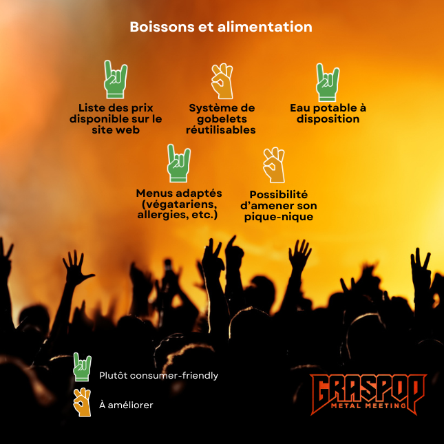 Nous avons évalué les initiatives mises en place par les organisateurs du Graspop en matière de boissons et d’alimentation : offrent-elles une expérience positive aux consommateurs ?