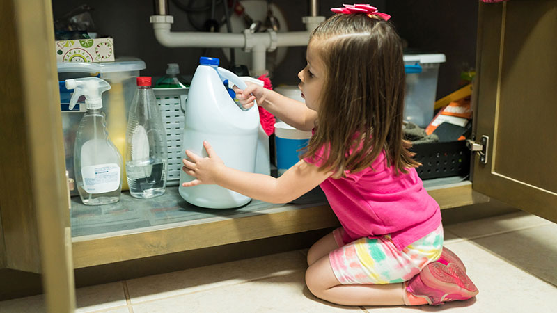 Transvaser des produits toxiques ou des détergents dans des bouteilles d’eau ou de jus de fruits n’est pas non plus une bonne idée. Celles-ci peuvent alors induire les enfants mais aussi les adultes en erreur. Quels que soient les récipients, rangez de toute façon ces produits en lieu sûr. Parce que là encore, les ingestions malencontreuses ne sont pas sans effet. Par exemple, l’eau de javel concentrée peut entraîner des brûlures de la bouche, de l’oesophage et de l’estomac et des irritations allant jusqu’aux brûlures au contact de la peau. Les lessives liquides en dosettes ou capsules colorées, attrayantes pour les enfants, contiennent un liquide irritant pour les muqueuses de la bouche, les yeux et la peau. Des nausées et des vomissements peuvent survenir. Un jet de liquide dans l’arrière-gorge peut provoquer des difficultés respiratoires. Une projection de liquide dans l’œil peut entraîner une irritation importante des yeux. Gardez donc les jeunes enfants éloignés des activités de nettoyage.