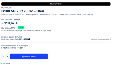 Certains magasins vont même jusqu'à vendre leurs produits plus chers en prétendant qu’ils sont en promotion ! Par exemple, un smartphone Motorola était en vente le jour du Black Friday pour 359 euros, soit une réduction de 35 % par rapport au prix initial de 549 euros. Or, ce même smartphone était en vente une semaine avant le Black Friday pour 249 euros !