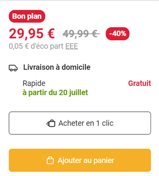 Un autre exemple est ce fer à repasser, censé coûter 50 euros, qui était pourtant au prix de 29,95 euros dans les 30 jours précédant cette promotion.