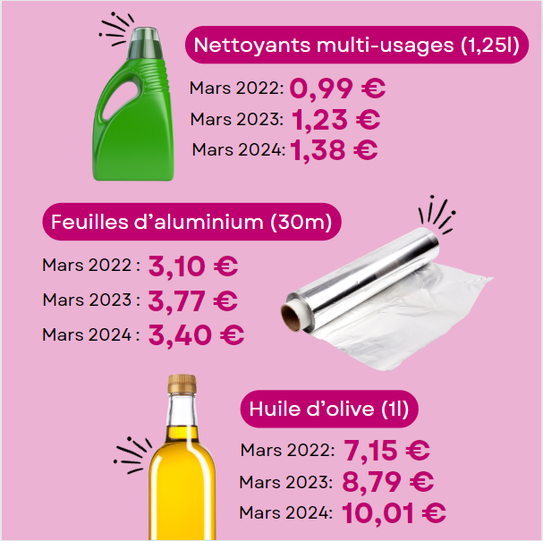 Bonne nouvelle : Testachats a pu observer qu'un certain nombre de produits de base sont, en moyenne, moins chers aujourd'hui que l'année dernière. Par exemple, le prix du pain a diminué de 2,7 % par rapport à mars 2023, une boîte de lait demi-écrémé coûte 3,5 % de moins et le film alimentaire et le papier d’aluminium sont même 7 % moins chers qu’en 2023.