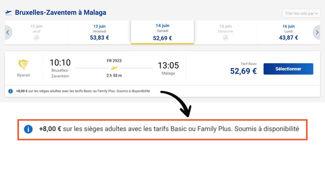En effet, à la base, chez Ryanair, des frais cachés s'ajoutaient dans le panier lorsqu’un adulte choisissait un siège pour pouvoir être assis à côté d’un mineur qu’il accompagne (+ 8 euros). L’imposition d’un tel supplément avait été déclarée illégale par le Conseil d’État italien en mars 2024, car elle exploite une situation évidente de nécessité (aucun parent ne laisserait son enfant mineur assis seul pendant un vol) et répercute le coût d’une obligation légale de sécurité qui incombe aux compagnies aériennes.