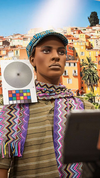 Nous testons aussi la qualité d’image de l'appareil frontal (à selfie) à l’aide d’une scène très colorée avec des chartes, pour évaluer la résolution des images. Le niveau de détail, la netteté, le contraste, la reproduction des couleurs dont les teintes du portrait (couleur de la peau) sont pris en compte.