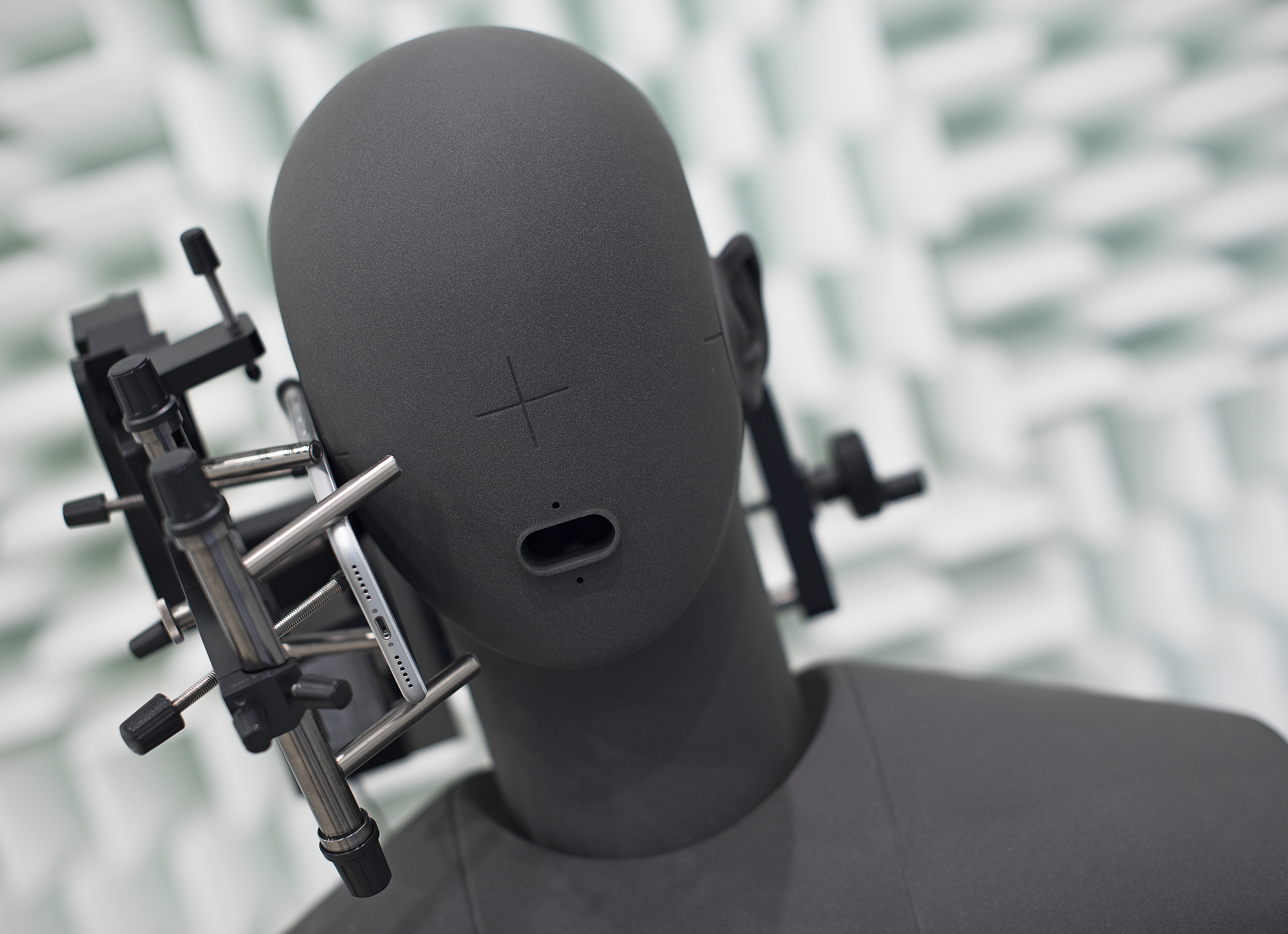 Nous testons la stabilisation d'image (optique ou non) à l’aide d’un vibrateur acoustique. Celui-ci génère des vibrations sur le smartphone pendant les prises et nous évaluons ensuite l’efficacité du stabilisateur d’image à contrecarrer ces tremblements, afin d’éviter les photos floues.