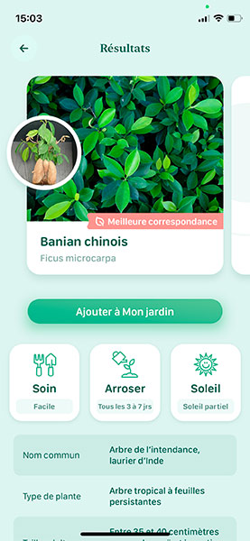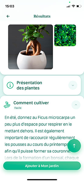 Blossom reconnaît la plante et donne immédiatement des conseils d'entretien.