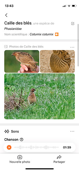 L'application a reconnu une caille.