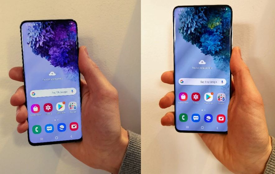 Photo : à gauche, le S20, où le pouce n’est pas trop loin du haut de l’écran. Le S20+: le pouce est loin du haut de l’écran.