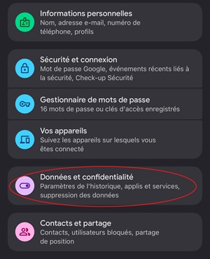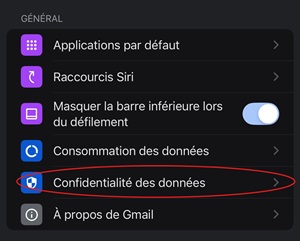 3. Descendez à nouveau jusqu’à l’option “Confidentialité des données”.