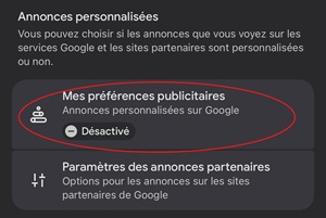 5. Revenez dans la rubrique “Données et confidentialité” et désactivez “Mes préférences publicitaires” pour que les informations issues de Gmail ne soient plus utilisées pour vous cibler avec des publicités personnalisées.