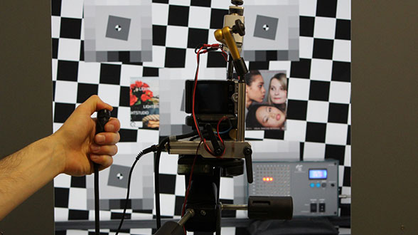 Ce test consiste à photographier une même scène d’abord avec l'appareil fixé sur un trépied et ensuite posé sur un vibrateur électrodynamique qui génère des petites secousses. La netteté d'image et le bruit sont comparés afin d'en déduire l'efficacité du stabilisateur.