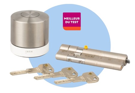 Nuki ne fournit pas de cylindre, mais vous pouvez en acheter un en option sur leur site. Le cylindre proposé est certifié SKG 3*, offrant une protection renforcée contre le bris du rotor lors d’une tentative d’effraction. Toutefois, il n’a pas de goupille spéciale pour résister au perçage.