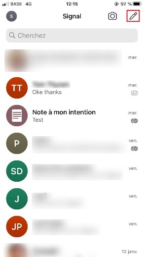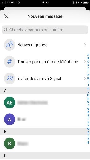 Ouvrez l'application et appuyez sur dans le coin supérieur droit. Là, vous verrez tous vos contacts qui ont installé Signal sur leur smartphone.