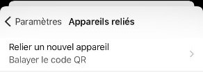 Une fois l'application téléchargée sur votre ordinateur, vous pouvez connecter votre appareil mobile à l’appli de l'ordinateur. Allez dans les Paramètres de Signal (cliquez sur votre image ou sur la première lettre de votre nom en haut à gauche) puis dans Appareils reliés. Là, cliquez sur le bouton + (Android) ou sur Relier un nouvel appareil (iPhone).