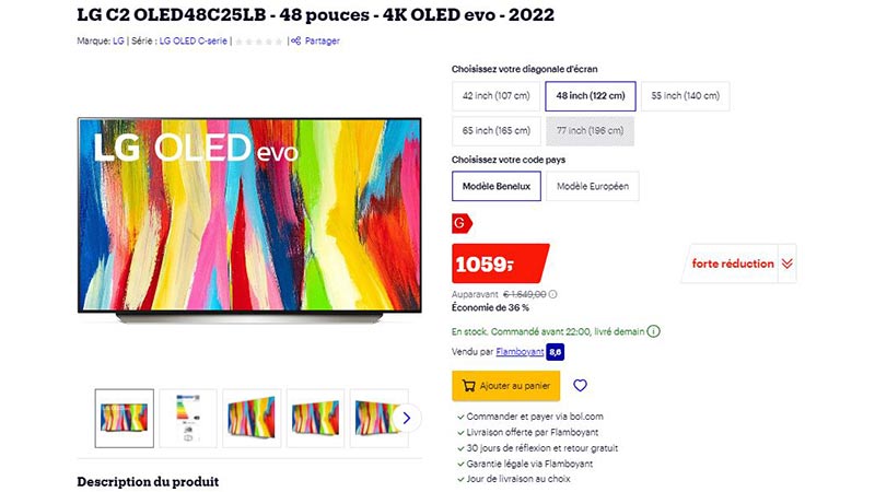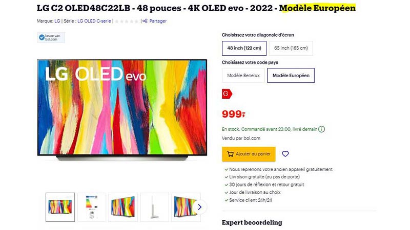 La même TV LG dans le même webshop, mais en modèle Benelux