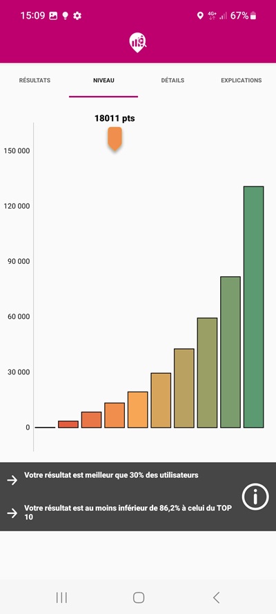 Un score final en points est établi sur base des résultats de ces 5 tests. Il peut ensuite être comparé aux autres résultats pour ce même emplacement.