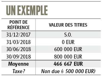 Vous devez vous acquitter de la taxe sur les comptes-titres de 0,15% si la valeur moyenne de vos avoirs taxables sur vos comptes-titres entre le 10 mars 2018 et le 30 septembre 2018 a atteint au moins 500 000 euros.
