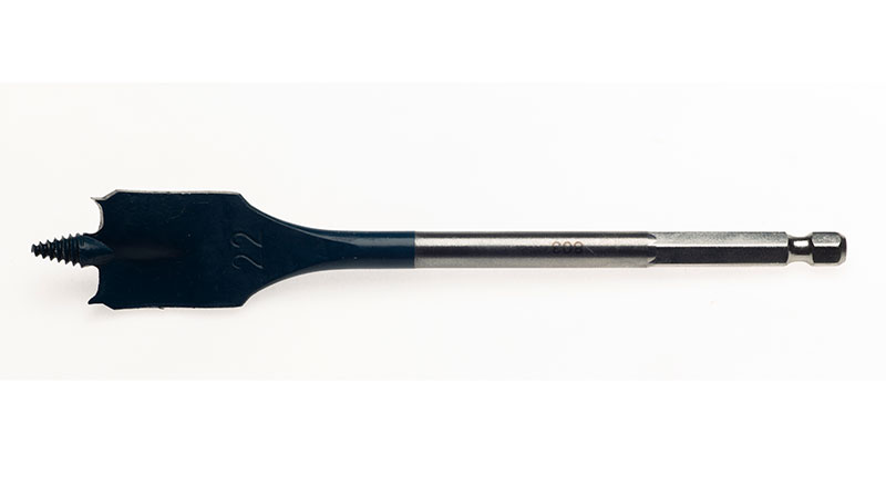 Une mèche à bois à spirale se reconnaît à sa pointe acérée à enfoncer dans le bois, pour éviter tout dérapage de la mèche. Ces mèches existent en un large éventail de dimensions. Elles s’utilisent par exemple pour forer un trou dans du bois, pour pouvoir y introduire une vis plus facilement. Lorsque vous vissez directement une vis dans du bois, celui-ci peut se fendre. Commencez à forer lentement, et augmentez la vitesse une fois la mèche bien introduite.