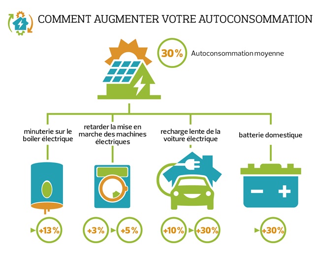 Si vous ne disposez pas du principe du compteur qui tourne à l’envers, vous avez donc tout intérêt à consommer votre production plutôt que de prélever sur le réseau, ce sera autant d’économies sur votre facture!