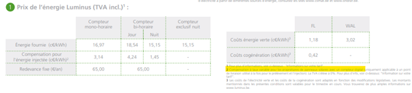 Un tarif d’injection fixe, qui ne suit pas les fluctuations des prix du marché, reste malheureusement assez rare. La plupart des tarifs d’injection sont variables, même lorsque le contrat de consommation (c’est-à-dire le prix de l’électricité consommée) est fixe. Cela prête à confusion : de nombreux consommateurs pensent à tort que leur tarif d’injection est, lui aussi, fixe. D’autant plus que cette information essentielle n’est pas toujours clairement mentionnée dans la fiche tarifaire. A titre d’exemple, Luminus propose des contrats à prix fixe pour la consommation, mais dans les petites lignes, on peut lire que l’indemnité pour l’électricité injectée sur le réseau est, elle, variable.