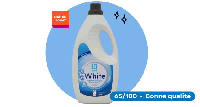 9. BONI SELECTION (COLRUYT) WHITE - 65/100 (catégorie lessive universelle) - Maître-achat - Lessive liquide