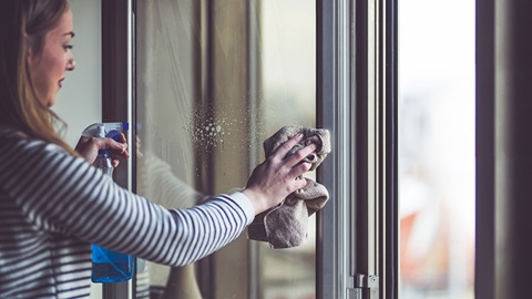 Si vous optez pour un vaporisateur, laissez la raclette de côté et prenez un chiffon qui ne peluche pas. Essuyez le produit en traçant des cercles de gauche à droite et en descendant du haut vers le bas. Si votre vitre est très sale, il peut être utile de la passer d'abord malgré tout à l'eau savonneuse. Commencez par le côté extérieur de la vitre. Ainsi, lorsque vous nettoierez l'intérieur, vous verrez tout de suite le résultat et pourrez facilement rectifier le tir. Et puis, mieux vaut éviter de laver vos vitres lorsqu'il fait très chaud, sinon le produit séchera trop vite et laissera de vilaines traces.