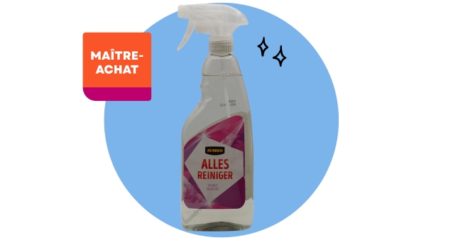 Il s’agit d’une bonne alternative au Maître-achat Jumbo avec un prix comparable. Il perd quelques points dû à son impact environnemental plus faible mais laisse en moyenne moins de traces après usage que les autres détergents spray.