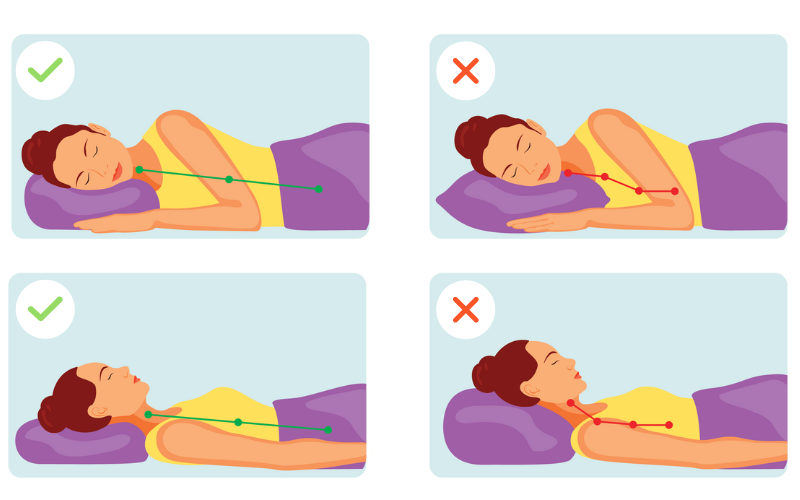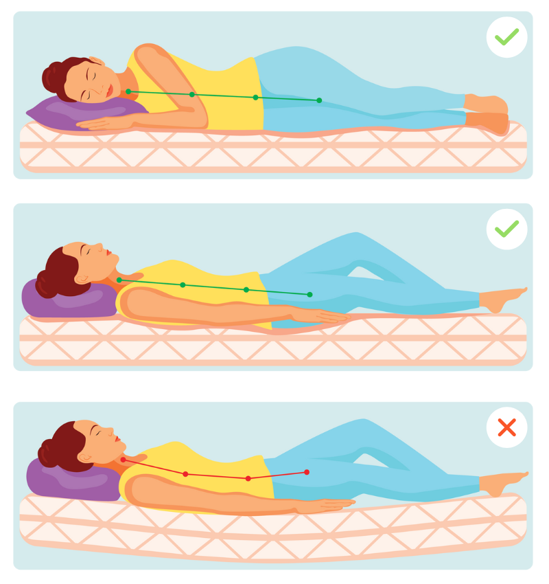 Dans ce cas, vous devez veiller à choisir un oreiller offrant un soutien correct, comme les coussins ergonomiques. Ils ont une forme ondulée : la tête repose sur la partie inférieure, et le rehaussement au niveau de la nuque remplit l'espace dans la cavité cervicale. Il permet de soulager la tension dans les muscles du cou et d'assurer un alignement correct de la tête, du cou et du dos.