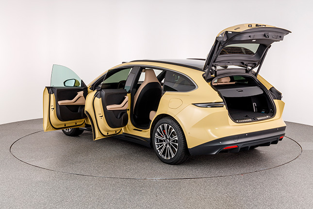 La voiture présente une allure moderne et aérodynamique, avec des poignées de porte encastrées, un toit panoramique et une partie arrière élégamment dessinée. La finition est de haute qualité et peut rivaliser avec les marques premium allemandes. L’habitacle est à la fois moderne et chaleureux, bien que certains éléments, comme les plastiques durs sur le bas des panneaux de porte, fassent un peu moins haut de gamme.