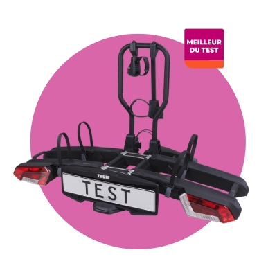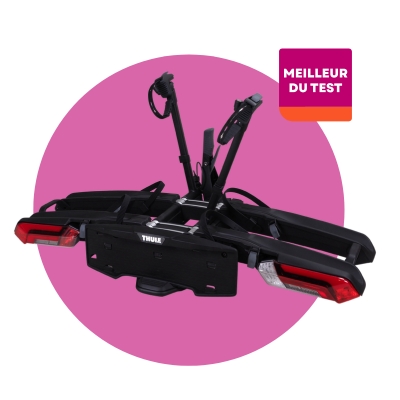 Ce modèle Thule offre lui aussi d’excellentes performances, avec des scores élevés en matière de facilité d’utilisation. Il s’installe aisément et permet de fixer les vélos rapidement. Une fois replié, il reste toutefois assez encombrant. Avec ses 18 kilos, il est aussi assez lourd. Il peut accueillir deux vélos, mais un adaptateur permet d’en transporter trois. Ce modèle est aussi adapté aux pneus larges (jusqu’à 6,5 cm).