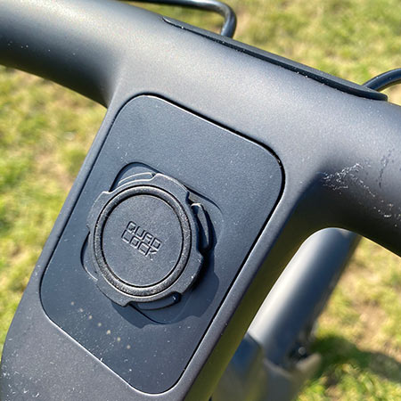 Le smartphone reste essentiel pour déverrouiller le vélo Cowboy et le mettre en marche, ce qui lui vaut une place centrale. On peut le placer dans le support quad lock intégré au milieu du guidon redessiné, où il fera office de tableau de bord. Il faut pour cela que le smartphone soit compatible avec ce support, en le glissant dans une coque quad-lock ou en fixant une connexion quad-lock sur votre coque actuelle. Mais cela implique aussi qu’il faudra la connexion ad hoc pour connecter votre smartphone ailleurs, dans la voiture ou sur un autre vélo par exemple.