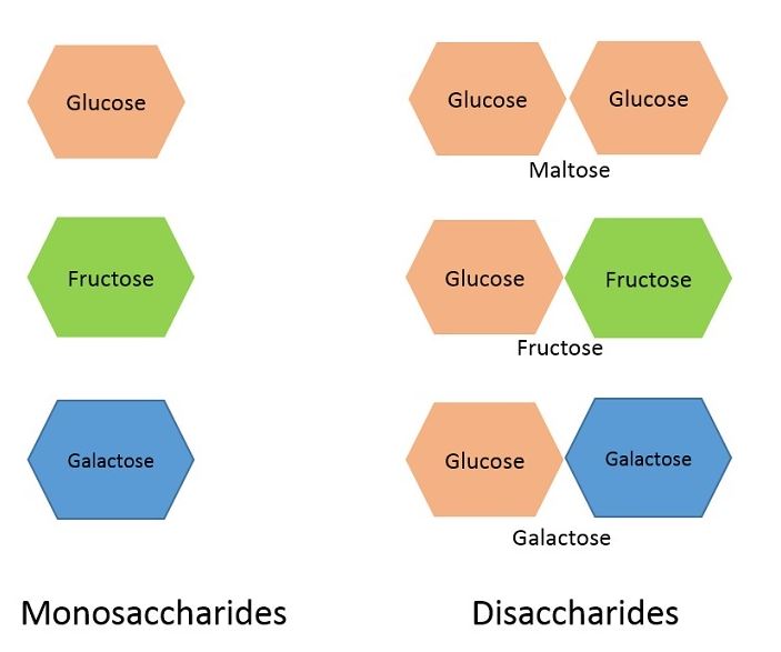 - Les disaccharides, qui correspondent à deux unités de glucide (saccharose, lactose, maltose).