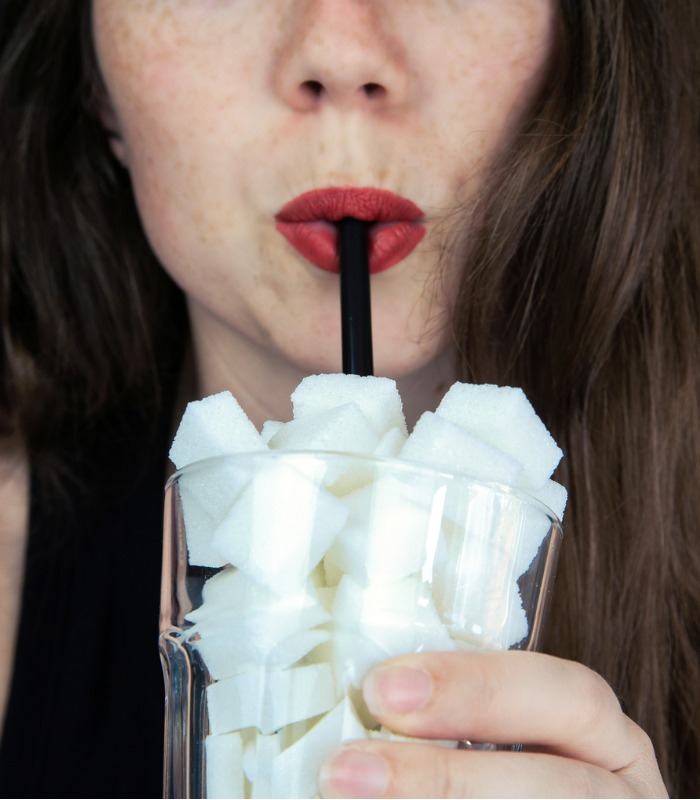 L'abus de glucides simples (= le sucre, le sucre des fruits, le miel, le lactose du lait, etc.) influence le fonctionnement de notre organisme et la quantité de tissus adipeux. Ils augmentent la sécrétion d'insuline, l'hormone qui régule le taux de sucre sanguin, ce qui stimule notamment leur transformation en acides gras (la « lipogenèse »).