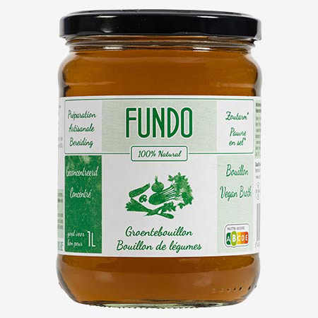 - Fundo: ce bouillon concentré liquide a une liste d’ingrédients simple et compréhensible. C'est toutefois le plus cher de notre analyse: 4,09€/L, disponible chez Delhaize et Albert Heijn.