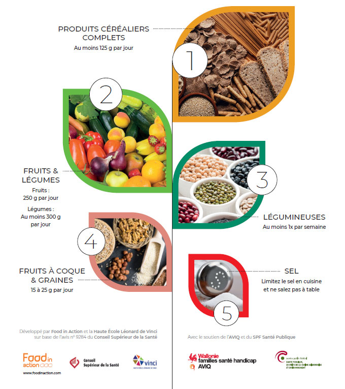 Les nouvelles recommandations du Conseil Supérieur de la Santé ont donné naissance à un outil complémentaire à la traditionnelle pyramide alimentaire. Il s’agit de l’Epi Alimentaire, un nouveau guide développé par Food in Action et l’Institut Paul Lambin (Haute École Vinci).